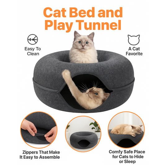 Donut Cat Bed with Tunnel | Cat Bed and Play Tunnel